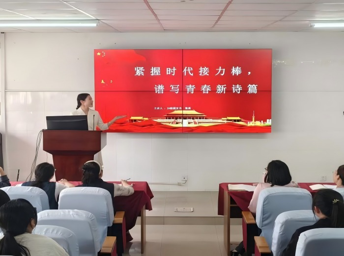在翡翠路校区举办团干讲团课微团课大赛。13名来自本科生、研究生各年级的团干同台竞技,充分展示新时代护理团干的理论素养和青春风采。院党委副书记王磊指导比赛。比赛现场,团干青年们以“小切口”展现“大主题”,用“身边事”讲透“大道理”,用青春语言诠释党团理论,把“沾泥土”的基层故事转化为“冒热气”的生动教案,为现场团员献上了一场有高度、有温度、有力度的思想盛宴。2024级研究生赵云凤以《以青春之名,赴时代之约》为题,从青春铸魂、使命生光、青年作答三方面探寻当代青年价值坐标,激励青年以实现中华民族伟大复兴为己任,用微小努力拼出时代答卷;2023级护理学王依晨以《六尺巷精神:从邻