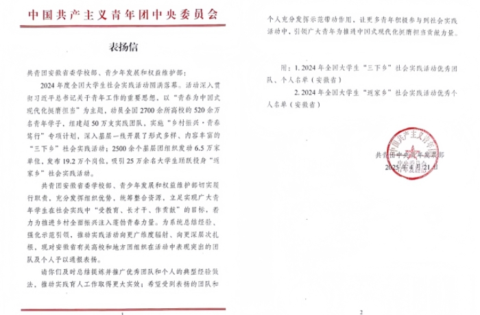 近日,共青团中央青年发展部发来表扬信,果冻传媒 “天使护蕾”暑期社会实践团获得2024年全国大学生“三下乡”社会实践活动优秀团队。